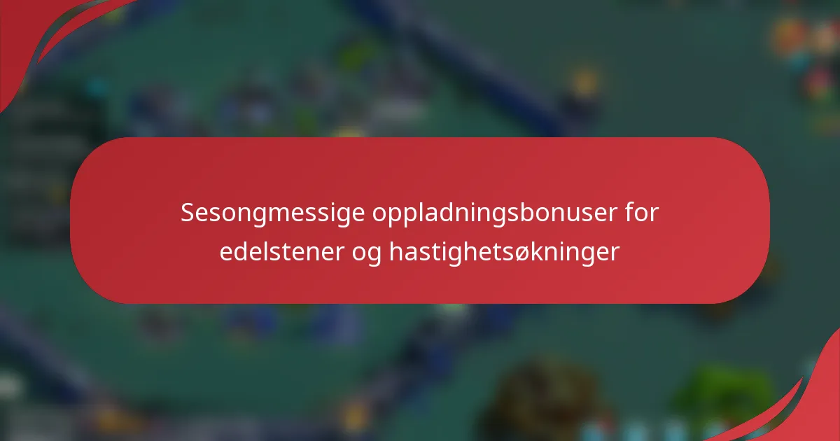 Oppladningsbeløp Bonusverdi Type bonus $5 100 Edelstener Umiddelbar belønning $10 250 Edelstener + Ressurspakke Nivådelt belønning $20 600 Edelstener + Eksklusiv gjenstand Tidsbegrenset tilbudDenne sammenligningen fremhever hvordan ulike oppladningsbeløp kan gi varierende bonusverdier, noe som lar spillere ta informerte beslutninger basert på sine forbrukspreferanser og spillbehov.