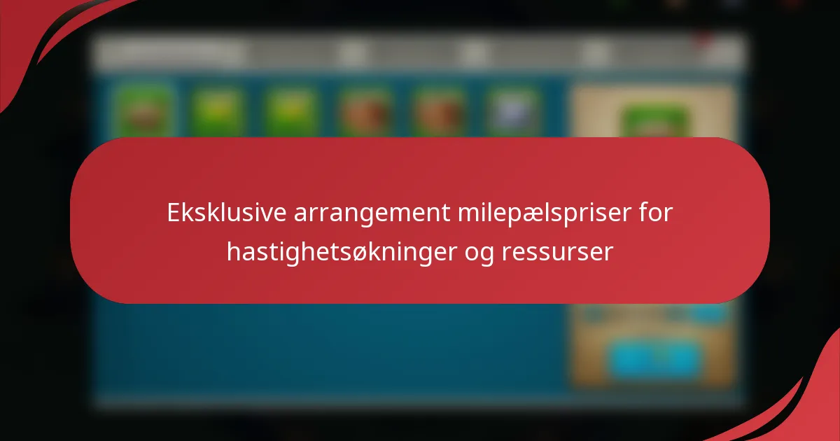 Eventmilepælspriser er essensielle belønninger som spillere kan tjene ved å oppnå spesifikke mål under hendelser i spillet. Disse prisene inkluderer vanligvis verdifulle hastighetsøkninger og ressurser som betydelig forbedrer spillopplevelsen, og muliggjør raskere oppgraderinger og fremgang. Ved å delta i milepælsarrangementer kan spillere få tilgang til en rekke belønninger som bidrar til en mer effektiv og konkurransedyktig spillopplevelse.